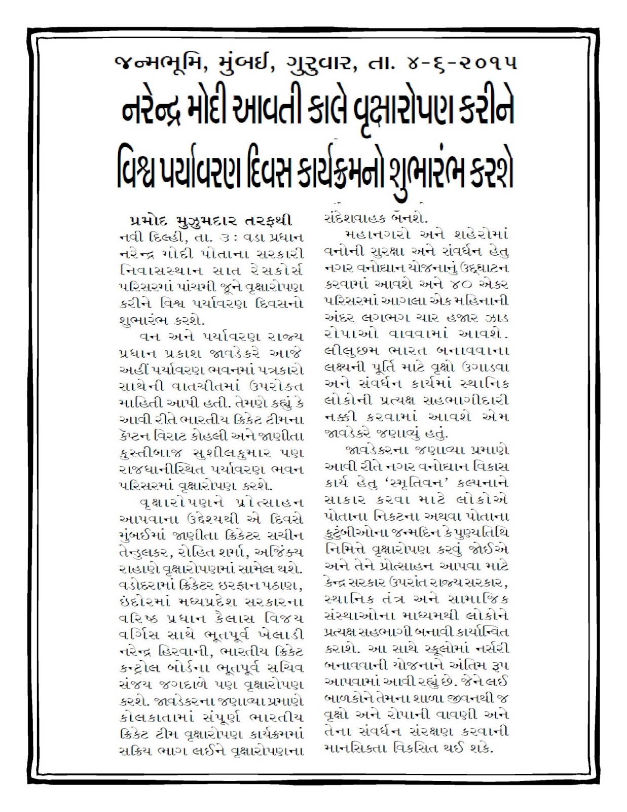 વિશ્વ પર્યાવરણ દિવસની ઉજવણી